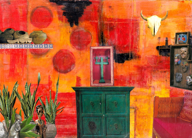 La Casa Curiosa en San Antony, Mexico (Mixed Media Collage on Art Board)